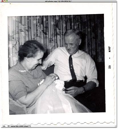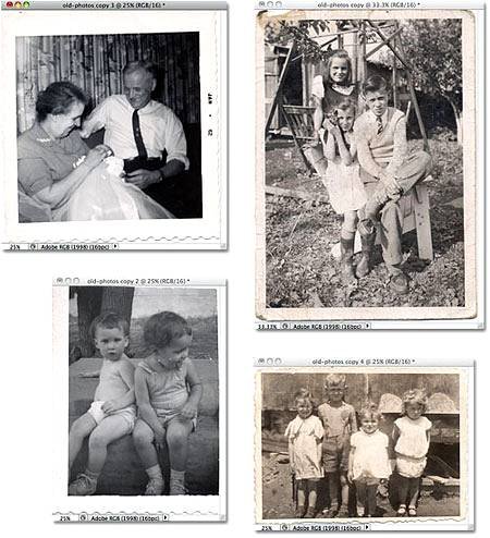 | Функция «Crop and Straighten Photos» (Кадрировать и выпрямить фото)В этом уроке мы рассмотрим функцию «Crop and Straighten Photos» (Кадрировать и выпрямить фото) в Фотошопе. Одна из вещей, которую я люблю делать в свободное время, - переводить старые фотографии в цифровую форму, сканировать их на компьютер, так я могу ретушировать их в Photoshop, потом распечатывать новую измененную версию, или просто записывать на CD или DVD для хранения. Конечно, нет нехватки старых фото, они просто окружают нас, но есть нехватка свободного времени для сканирования, обрезания, выравнивания каждого изображения индивидуально, по отдельности, - это может занять много времени. К счастью, нет нужды это делать, благодаря чудесной функции, которая была впервые включена в Photoshop CS – команда «Crop and Straighten Photos» (Кадрировать и выпрямить фото). С ее помощью мы можем отсканировать несколько изображений за раз нашим планшетным сканером, потом разрешить программе Photoshop автоматически их кадрировать, выпрямить и открыть каждую фотографию для нас в ее собственном отдельном документе, и это за считанные секунды! Вот как это работает. Для начала разместите много фотографий, сколько вам захочется (или меньше, сколько поместится), в ваш сканер. Убедитесь, что вы оставили немного пустого места вокруг каждой фотографии, чтоб они не перекрывали друг друга. Photoshop не способен сканировать изображения, поэтому вам необходимо будет использовать также и программу вашего сканера (например, VueScan или SilverFast), чтоб отсканировать ваши фотографии. Сохраните свои файлы и формате TIFF для лучшего качества изображения, и откройте их в Photoshop. Вот мой файл после сканирования – четыре изображения сразу. Заметьте, что я совсем не старался расположить в сканере изображения должным образом (они не стоят ровно, все повернуты). Я старался только в одном – расположить их так, чтоб они не перекрывали друг друга, иначе Photoshop столкнется с проблемами, когда будет пытаться их разъединить: ![]() Убедитесь, что вы оставили место вокруг каждой фотографии, и что они не перекрывают друг друга. Сейчас все четыре фотографии – часть одного большого изображения, но мне нужно, чтоб они были разделены, каждая в свой индивидуальный документ. Я могу разделить их вручную, создавая выделение вокруг каждой фотографии, копируя ее на новый слой и создавая новый документ с этого слоя, но потом я все еще буду должен кадрировать и выпрямить каждую фотографию самостоятельно, и мне уже становится скучно, как только я начинаю думать об этом. Чтоб это сделать, идите в меню File - Automate - Crop and Straighten Photos (Файл - Автоматизация - Кадрировать и выпрямить фото): ![]() Это все, что нужно, и займет у вас секунды. Photoshop проверяет файлы, делает копии каждой фотографии, открывает фотографию в ее собственном окне, не это ли лучшая работа по кадрированию и выравниванию каждого изображения, которая происходит без нашего участия: ![]() Все четыре фотографии были кадрированы, выровнены и открыты в отдельном документе. Для команды, которая полностью работает на автопилоте, Photoshop выполнил поразительную работу по отделению каждой фотографии с оригинального скана. Делает ли он также хорошо работу по кадрированию и выравниванию фото? В основном, да, но посмотрев на это изображение, мы увидим, что оно все еще немного наклонено: ![]() Команда «Crop and Straighten Photos» (Кадрировать и выпрямить фото) не всегда де