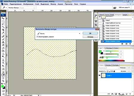 | Как рисовать кистью на основе созданных контуровВ этом уроке Вы узнаете, как рисовать кистью на основе созданных контуров в Фотошопе. Для начала создаем документ с произвольными размерами. Далее, мы выбираем инструмент Brush Tool (Инструмент «Кисть» / Клавиша «B») и задаем необходимые параметры. Для наглядности я взяла кисть большого радиуса и зеленого цвета. ![]() С помощью инструмента Pen Tool («Перо» / Клавиша «P») создаем линию. После чего, нажатием правой кнопкой мыши вызываем дополнительное меню, где выбираем «Stroke Path» (Выполнить обводку контуром). ![]() Для более глубокого понимания инструмент Pen Tool («Перо» / Клавиша «P»), это не рисунок, а если мы линию обведем кистью – это фактически эквивалентно нарисованной кистью линии. Просто нарисовать красивую линию сразу кистью достаточно тяжело, именно поэтому мы задействовали перо. Итак, меню обводка контуром. Теперь выбираем инструмент Кисть, ![]() Галочка «Simulate pressure» (Имитировать нажим) отвечает за толщину линии. Если вы выберите эту опцию, линия вначале будет более тонкой, потом к середине утолщается, и к концу опять утончается. Если же не использовать эту опцию, то линия будет одной толщины, равной диаметру заданной ранее кисти. ![]() Итак, вот что у меня получилось. Так как, сама кривая, созданная пером, нам больше будет не нужна, мы ее удалим – нажимаем правой кнопкой мыши, вызываем дополнительное меню, где выбираем «Delete pass» (Удалить контур). ![]() Напоследок мы можем создать из получившегося рисунка кисть. Зажимая клавишу Ctrl, кликаем по слою в панели слоев, таким образом, загружаем выделение. ![]() Далее заходим в меню Edit - Define Brush Preset (Редактирование - Определить кисть). Вводим название, жмем Ок, и получаем новую кисть. Вот и все. ![]() |