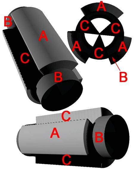 | Создание сложных 3D объектовВ данном уроке Фотошопа мы рассмотрим, как можно создать 3D фигуру из изображения используя Photoshop CS5. 1. Немного теорииВсе трехмерные (3D) объекты, которые мы хотим создать должны быть вначале нарисованы в фотошопе в градациях серого. Что это значит? Все просто, трехмерные объекты в фотошоп рисуются на основании заданных цветов которые лежат от черного к белому, но обязательно в градациях серого (не путайте с черно-белым изображением). На скриншоте который расположен ниже показан этот спектр цветов: ![]() Чем темнее вы выберете цвет, тем больше будет вмятина в 3D объекте, и наоборот, чем светлее будет выбранный цвет, тем больше это место будет возвышаться на 3D объекте. Таким образом мы можем создавать рельефы, выпуклости и вогнутости на 3D объекте. Необходимо заметить, что все 3D объекты имеют стандартный геометрический набор в четырех направлениях: - плоскость; - двусторонняя плоскость; - цилиндр; - сфера; На основании которых строятся модели, исходя из того, какую модель нам предстоит построить. Это значит, что имея заготовку в виде рисунка в градациях серого, мы можем построить из него четыре различных фигуры. Для того, что бы это все понять, перейдем к практике. 2. Подготовка рабочей среды программы к работеЕсли у Вас еще не включена отрисовка OpenGL, включаем ускорение трехмерных объектов: ![]() Нам понадобится палитра для работы с 3D объектами. Если у Вас ее нет сделайте следующее: Window - 3D (Окно - 3D). ![]() 3. Создание заготовкиСоздаем новый документ: File - New (Файл - Создать / Сочетание клавиш «Ctrl+N»), выставляем такие параметры: ![]() Вы можете задать другие параметры, но помните, чем больше наше изображение, и его разрешение тем тяжелей и дольше компьютер будет обрабатывать нашу фигуру. Нарисуйте на холсте кистью с твердыми краями и большого диаметра, нажав клавишу Shift, следующий рисунок (выбирайте для каждой полосы цвет, который указан у меня на скриншоте): ![]() Это и есть наш рисунок – заготовка. 4. Создание 3D объектовВ палитре 3D объектов, установите такие настройки, и нажмите кнопку создать: ![]() Посмотрите на фигуру которая получилась: ![]() Теперь повращайте ее инструментами: ![]() Как Вы видите более темные цвета посажены глубже, а более светлые наоборот более выдвинуты вперед. ![]() Посмотрите на фигуру которая получилась: ![]() Как Вы видите более темные цвета посажены глубже, а более светлые наоборот более выдвинуты в перед. В палитре 3D объектов, выставите теперь такие настройки, и нажмите кнопку создать: ![]() Посмотрите на фигуру которая получилась: ![]() Как Вы видите более темные цвета посажены глубже, а более светлые наоборот более выдвинуты вперед. Попробуйте проанализировать фигуру, глядя на нашу заготовку и сравнивая ее с фигурой. Теперь снова верните состояние когда у нас была простая заготовка. В палитре 3D объектов, выставите теперь такие настройки, и нажмите кнопку создать: ![]() Посмотрите на фигуру которая получилась: ![]() Как Вы видите более темные цвета посажены глубже, а более светлые наоборот более выдвинуты в перед. 5. ПримерДумаю Вы поняли принцип по которому фотошоп строит трехмерные объекты. Для закрепления материала, покажу такой пример: ![]() Для того, чтобы нам воссоздать такую же мы должны проанализировать следующим образом: Сверху и снизу у фигуры места среднего диаметра относительно всей фигуры, а значит на заготовке о