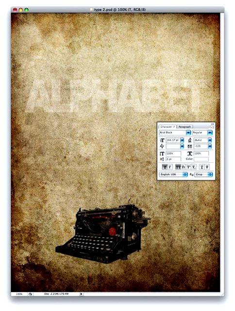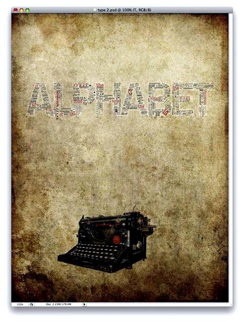 | Проектирование типографской афишиВ этом уроке Фотошопа мы спроектируем топографическую афишу. 1. Для начала создаем новый документ 768 px на 1024 px. 2. В примере мы используем 2 старинные текстуры. Найди их можно тут. Вы же можете использовать любые другие, которые больше вам подходят. ![]() 3. В этом шаге вы раставляете выбранные вами текстуры так, как вам удобней. Режим наложения для слоев выставляем Multiply (Умножение). ![]() 4. Теперь мы импортируем изображение печатной машинки, предварительно вырезав белый фон, при помощи инструмента Pen Tool (Инструмент «Перо» / Клавиша «P») или Magic Wand Tool (Инструмент «Волшебная палочка» / Клавиша «W»), как удобнее. Назовем этот слой «Typewriter». ![]() 5. Для слоя «Typewriter» ставим режим наложения: Multiply (Умножение) и Opacity (Непрозрачность): 90%. ![]() 6. Далее дублируем слой «Typewriter» и ставим режим наложения слоя: Soft Light (Мягкий свет) и Opacity (Непрозрачность): 30%. ![]() 7. Потом вам нужно написать любой текст используя инструмент Type Tool (Инструмент «Горизонтальный текст» / Клавиша «T»). Шрифт, который использован в примере - «Arial». Просто напишите свой текст белым, а также поместите его поверх всех слоёв, затем преобразуйте текст, так как вы желаете. Также, установите настройки к слою: режим наложения Soft Light (Мягкий свет) and Opacity (Непрозрачность): 50%. ![]() 8. Этот шаг является самым трудоёмким, ибо занимает очень много времени. Вам придётся написать множество слов в слово, которое вы сделали в 7 шаге. Вы можете свободно помещать и преобразовывать слова. Для этих слов в примере используется шрифт «American Typewriter». Для удобства можно перенести эти слова в папку «Алфавит». В примере раскрашены некоторые из слов красным цветом. Это сделано, чтобы выделить цитату о чём либо. Также, чтобы предоставить большее столкновение эффекту, если посмотреть в низ слова, слова, кажется, падают. Это добавляет больше движения к составу. ![]() 9. Пока проделанная работа должна походить на изображение ниже. ![]() 10. Сейчас вам нужно добавить несколько больше текста. На сей раз Вы получите эффект выскакивания слов из пишущей машинки. Не создавайте полные слова, только буквы. Например, в примере начинаем с буквы «a», и дублируем её пару раз, затем преобразовываем каждый слой, пока это не будет соответствовать представлению. Потом, печатаем «b», и так далее. В конечном итоге переместите все слои на папку под названием «Текст». ![]() 11. Вы должны будете повторить пункт «10», но на сей раз добавить меньше букв и сделать их меньше. Затем растрируйте их, и используете через меню Filter - Blur - Gaussian Blur (Фильтр - Размытие - Размытие по Гауссу) с Radius (Радиус) 1.0 px. Это создаст иллюзию, что буквы где-то вдали. ![]() 12. Создайте еще пару букв (в примере их 6). Сделайте их больше остальных. Потом преобразуйте их, используя инструмент Free Transform (Редактирование - Свободное трансформирование / Сочетание клавиш «Ctrl+T»). Потом растрируйте примерно 50% от кол-ва букв. И примените для них через меню Filter - Blur - Gaussian Blur (Фильтр - Размытие - Размытие по Гауссу), используя различный радиус для каждой из букв. Это даст иллюзию, что эти буквы более близки. ![]() 13. Чтобы придать эффект высоты вот примерно тут находим облака, вырезаем их. Вытавляем поверх всех слоёв. Затем добавлям для красоты трещины при помощи кистей, а также внизу добавляем еще букв. Ну вот и всё. Вся сложность рисунка в том, что надо постоянно создавать большое кол-во букв. ![]() |