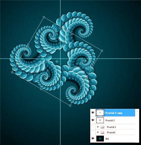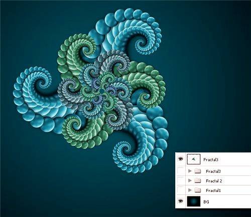 | Создание фрактальных изображенийВ этом уроке Фотошопа мы рассмотрим процесс создания фрактальных изображений. ![]() Спорю, каждый из вас видел фрактальные изображения. Кто-то увидел их на обложке журнала, а кто-то в галерее, а кто-то просто разглядел узор на какой-нибудь плитке. И если вы вглядывались в картинку, то вы видели повторяющиеся фигуры, соединяющиеся в узор. В этом уроке Фотошопа мы научимся сами создавать подобные картинки. Шаг 1Лирическое отступление: Википедия описывает фракталы, как «бесконечно самоподобную геометрическую фигуру, каждый фрагмент которой повторяется при уменьшении масштаба» Способов создания фракталов множество, взять хотя бы, к примеру, бесплатную программу Apophysis. Но наверно как уже все догадались, мы будем создавать фрактальное изображение с помощью Photoshop и только… Создайте изображение размером 1600 х 1200 пикселей (в принципе размер роли не играет, ибо автор создает картинку для своего рабочего стола). Ctrl+R – это вызывает сверху и сбоку окна, что-то наподобие линейки. Разделите изображение на четыре равные части. Теперь возьмите инструмент Gradient Tool (Инструмент «Градиент» / Клавиша «G») (выбрав при этом Radial Gradient (Радиальный градиент)) и проведите от центра к краю картинки (цвета: #095261 - #000000). ![]() Шаг 2Так, теперь выберете Ellipse Tool (Инструмент «Эллипс» / Клавиша «U») и нарисуйте круг по центру нашей картинки. Помните что круг должен быть правильным, поэтому не забывайте зажимать Shift и Alt. После того, как нарисуете свой первый кружочек, создайте папку, назвав ее как-нибудь, если требуется и поместите ваш круг туда. ![]() Шаг 3У нас есть кружок, но что же ему не достает? Верно! «Реалистичности!» Откройте Layer style (Стили слоя) «новобранца» и примените к нему: «Gradient Overlay» (Наложение градиента), с темно-синего на светло-голубой; Тень с 50% непрозрачности (Opacity) и cброшенным по нулям Distance (Расстояние); также не забудьте поставить галочку рядом с Bevel and Emboss (Тиснение), включая Contour (Контур) и Texture (Текстура). ![]() ![]() ![]() ![]() Шаг 4Теперь будем рисовать собственно фигуру нашего будущего фрактала. Продублируйте слой с кружком и уменьшите его в размерах с помощью Free Transform (Редактирование - Свободное трансформирование / Сочетание клавиш «Ctrl+T») с зажатым Shift-ом и Ctrl. Поместите вашу копию чуть выше исходника. Сделайте тоже самое, но теперь разместите копии по бокам круга (автор рисует треугольник, после создания второй фигуры, по углам которого он и размещает, оставшиеся круги). Теперь соедините все четыре фигуры. Прим. Переводчика: К сожалению, автор не указывает, как он это сделал и лично у меня после обычного соединения получается не пойми что… Поэтому мы не просто нажимаем Ctrl+E, а убираем ненужные слои и оставляем только кружки, затем Layer - Merge Visible (Слои - Объединить видимые / Shift+Ctrl+E). Шаг 5Ну а сейчас самая веселая часть! Ну сперва мы, как вы уже наверно поняли дублируем слой и нажимаем Ctrl+T. Уменьшаем нашу копию, немного нагибаем ее и самое ВАЖНОЕ – убираем transform center (+ в середине трансформации) в сторону. ![]() ![]() Шаг 6В этом действие мы будем тыкать по клавишам быстрого действия. Нажмите Ctrl+Shift+Alt+T. Пока непонятно, что произошло? Тогда проделайте эту операцию еще несколько раз и вы увидите, что копии закручиваются по спирали (если вы недовольны траекторией не расстраивайтесь, а вернитесь к тому моменту, когда вы дублировали наш «образец» из кружочков и уберит
