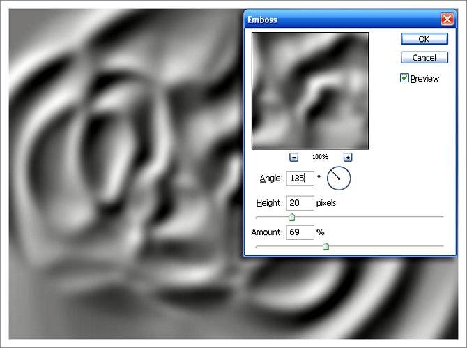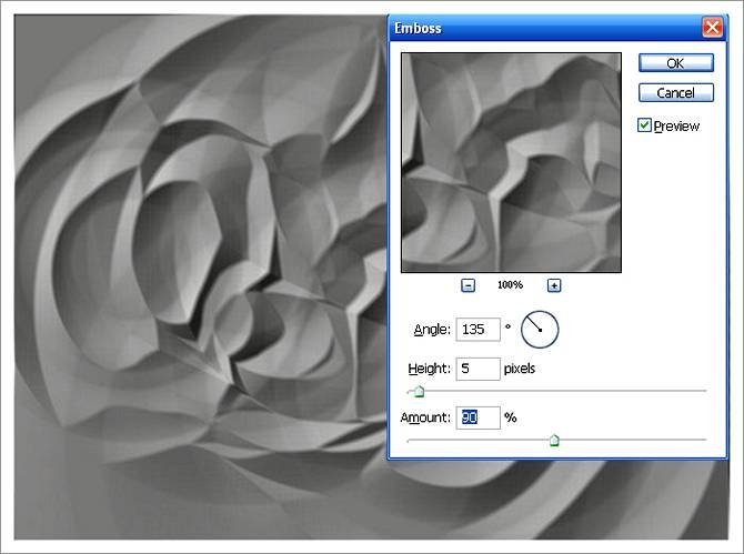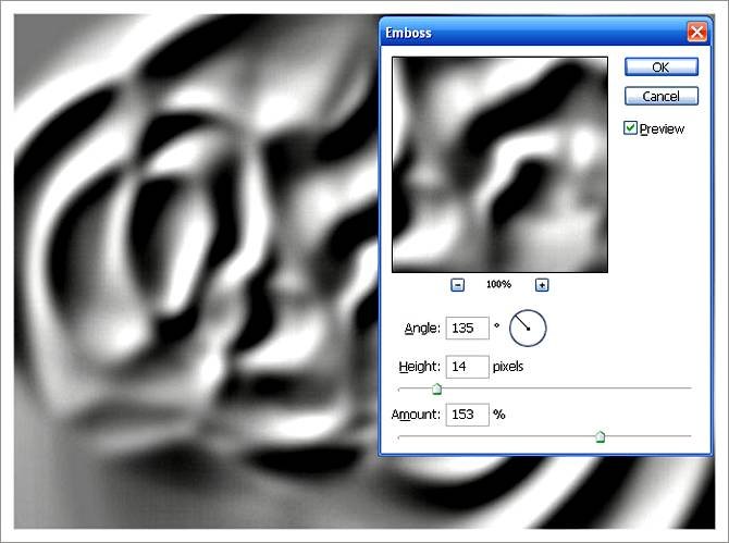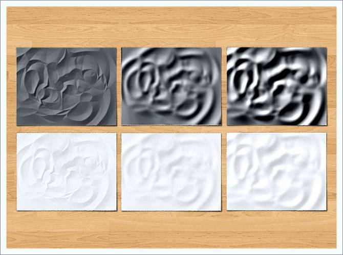 | Как сделать поверхность мятой на видВ этом уроке Фотошопа мы рассмотрим пример создания мятой поверхности. Часто, прочитав урок, человек узнает о том как создать эффект и где его можно применить, но не всегда подумывает о той пользе, которую можно дополнительно извлечь или как можно улучшить результат, если эффект и так специфичен. Что же, этим уроком я покажу вам пример осознанного экспериментирования, имевшего определенную цель, для получения лучшего или более нужного результата на выходе. В уроке будет показан пример создания подмятой из-за влаги бумаги и последующего применения заготовки для получения вида мятой пленки или ткани, покореженной под воздействием пара поверхности, дальнейший эксперимент для получения поверхности воды под каплями и т.д. Ниже один из вариантов, который можно получить по описанной технике. Шаг 1Начнем с истоков: сделайте в фотошопе листок бумаги или загрузите имеющийся: ![]() Шаг 2Начнем с того, что попытаемся получить вид помоченной бумаги, на которую возможно ставили влажные тарелки-чашки, а может просто повесили просушиться. Ну согласитесь, что ровные продольные линии здесь ни к чему. Из этого и следует искать лазейку… ага, ну конечно же — радиальный градиент! Создайте новый слой, залейте его белым цветом, активизируйте инструмент Gradient Tool (Инструмент «Градиент» / Клавиша «G») и зайдите в его окно настройки градиента. Настройте инструмент, как показано ниже, не забыв изменить режим смешивания на Difference (Разница) и выбрать радиальный тип: ![]() Шаг 3Проведите один раз градиентом в верхней части холста, потом еще раз: ![]() Потом еще: ![]() Сделайте это несколько раз. Уже сейчас становится ясно, что будущие линии мятости, не будут прямыми и чопорными: ![]() Шаг 4Теперь протестируем три дальнейших варианта. Сделайте три дубликата имеющегося слоя Ctrl+J и скройте про запас оригинальный слой. К первой копии примените через меню Filter - Stylize - Emboss (Фильтр - Стилизация - Тиснение): ![]() Ко второму, чтобы еще смягчить готовящиеся складки, примените через меню Filter - Blur - Gaussian Blur (Фильтр - Размытие - Размытие по Гауссу) (Radius (Радиус) = 6, 7 рх), а потом и фильтр Filter - Stylize - Emboss (Фильтр - Стилизация - Тиснение): ![]() ![]() Третий тоже размойте, но примените фильтр Emboss (Тиснение) с более агрессивными настройками: ![]() Шаг 5Всем трем дубликатам смените режим наложения на Soft Light (Мягкий свет) или для большей видимости Overlay (Перекрытие) (когда включен один слой, другие два выключены). Видим, что чем контрастней заготовка, тем сильнее она проявляется. ![]() Поэтому можно повысить контраст в уже готовых заготовках. А более резкую можно размыть и в таком состоянии или, как я замечал в предыдущем уроке — смазать пальцем, что даст более контролируемый результат: ![]() Шаг 6Но давайте задумаемся. А разве только на бумагу можно применять эти текстуры — они ведь действуют по типу карты высот: чередование света и тени создают неровности. А ну-ка растяните свою текстуру на весь холст и посмотрите на нее — ее можно применить к любой поверхности, которую хочется помять. Чтобы сделать это более естественно, сперва сохраните свою заготовку в формате .psd: ![]() Подложив под низ изображение поверхности, измените режим наложения назад на Soft Light (Мягкий свет). Получили вмятую поверхность, будто ее продавливали сверху: ![]() А теперь сделаем вздутую поверхность — просто инвертируйте сло