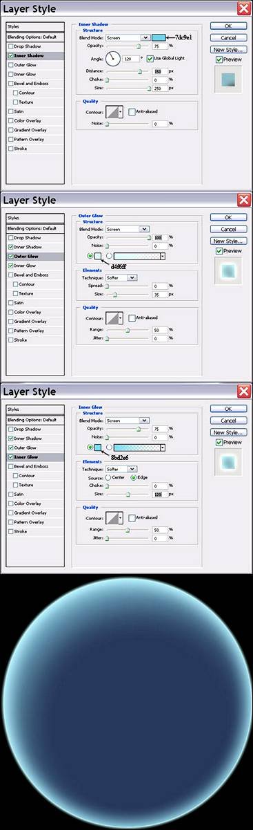 | Рисуем космос и планетуВ этом уроке Фотошопа мы рассмотрим, как нарисовать космос и планету в Фотошопе. 1. Сначала мы нарисуем звездное небо. Создайте новый документ и залейте его черным цветом. Я установил размер нового документа 1600 х 1200 px, чтоб его в дальнейшем можно было использовать в качестве обоев на рабочий стол. Дублируйте этот слой (Ctrl+J). Далее применяем к новому слою фильтр шум Filter - Noise - Add Noise (Фильтр - Шум - Добавить шум). Количество шума устанавливаем на 10%, Distribution: Gaussian (распределение по Гауссу) и ставим галочку на Monochromatic (Монохромный). ![]() 2. Далее идем в пункт меню Image - Adjustments - Brightness/Contrast (Изображение - Коррекция - Яркость/Контрастность) и устанавливаем Brightness (Яркость) 30 и Contrast (Контрастность) 75. Теперь шум больше напоминает звезды. ![]() 3. Теперь добавим звезды покрупнее. Дублируем предыдущий слой со звездами (Ctrl+J) и меняем для него Brightness/Contrast (Яркость и Контрастность) (Image - Adjustments - Brightness/Contrast (Изображение - Коррекция - Яркость/Контрастность)) устанавливаем Brightness (Яркость) 100 а Contrast (Контрастность) 50. ![]() 4. Нажмите (Ctrl+T) вызвав инструмент Free Transform (Редактирование - Свободное трансформирование) и сделайте слой с большими звездами приблизительно в два раза больше. Зажмите Shift чтоб трансформировать слой пропорционально. Нажмите (Ctrl+L), чтобы вызвать окно Levels (Уровни). Установите параметры как на рисунке, чтобы увеличить контрастность (в моем случае пришлось установить параметры противоположные параметрам автора 0, 1.00, 20). ![]() 5. Установите режим наложения для слоя на Screen (Экран). Чтобы избежать эффекта эха (эффекта наложения), нажмите Ctrl+T и поверните слой на 90 градусов (при зажатой клавише Shift во время поворота слоя, слой будет поворачиваться с шагом 15 градусов). Используйте этот прием при повороте. ![]() 6. Возьмите мягкую круглую резинку с диаметром приблизительно 20-30 px и начните стирать наши звезды на обоих слоях. Попытайтесь создать различные формы во всех направлениях, чтобы наши звезды выглядели естественнее. Также помните, что должно быть больше черного пространства, чем пространства со звездами и больше маленьких звезд, чем больших. ![]() 7. Попробуйте создать некоторые звездные области с помощью инструмента Clone Stamp Tool (Инструмент «Штамп» / Клавиша «S») ![]() 8. Добавим свечение звездам. Дублируйте слой с большими звездами. Примените фильтр Filter - Blur - Gaussian Blur (Фильтр - Размытие - Размытие по Гауссу) с радиусом приблизительно 10 px и измените режим наложения цвета на Linear Dodge (Линейный осветлитель). Нажмите Ctrl+U и колоризируйте свечение звезд (я установил Hue (Цветовой тон) на 230). Повторите этот этап несколько раз, чтобы сделать звездный свет более выразительным. ![]() 9. А теперь создадим остальные детали нашего космического пейзажа: огромные звезды, звездную пыль и разноцветную туманность. Создайте новый слой и установите режим наложения для слоя Linear Dodge (Линейный осветлитель) и залейте это черным цветом. Далее Filter - Render - Lens Flare (Фильтр - Рендеринг - Блик). Я использовал тип объектива 35-миллиметров. Создайте таким образом еще пару больших звезд изменив расположение центра блика и яркость блика. Используйте разные цвета для каждой из звезд, это придаст некоторое разнообразие общей картине (самый легкий способ сделать это - нажать Ctrl+U и изменить Hue (Цветовой тон)). ![]() 10. Создайте новый слой для создания звездной пыли. Установите Opacity (Непрозрачность слоя) на 25% и измен