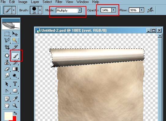 | Создаем свиток с закрученными краямиВ этом уроке Фотошопа мы создадим свиток с закрученными краями. 1. Создаем новый документ на котором делаем инструментом Rectangular Marquee Tool (Инструмент «Прямоугольная область» / Клавиша «M») прямоугольное выделение и заливаем нужным цветом. У меня это #e6d1b2. ![]() 2. Выделяем наш прямоугольник (нажать клавишу Ctrl +кликнуть мышкой на миниатюре слоя) и идем в Filter - Render - Clouds (Фильтр - Рендеринг - Облака). Получаем примерно следующий результат: ![]() 3. Не снимая выделения опять идем в фильтры Filter - Render - Lighting Effects (Фильтр - Рендеринг - Эффекты освещения)... - увеличиваем круг так, что бы в него поместилась вся наша «бумажка». Это нужно, что бы не было пересветов. Запоминаем откуда падает свет. (в моем случае это первый угол); - уменьшаем значение Negative из Intensity (Интенсивность); - меняем канал в Texture (Текстура) Channel на любой из выпадающего списка. Я поменяла на красный; ![]() Получаем примерно следующий результат: ![]() Ура, у нас появилась текстура на будущем свитке! Если вы не хотите свиток старить, можно смело переходить к шагу № 5. 4. Сейчас мы немного пооптрепаем края нашего листика. Сделать это можно либо не ровно пройдясь стеркой по краям, либо выделив лассо часть предназначенную для удаления и нажав клавишу Delete. ![]() 5. Инструментом Polygonal Lasso Tool (Инструмент «Прямолинейное лассо» / Клавиша «L») ![]() 6. Жмем Ctrl+J и копируем наши выделенные участки на новый слой (сейчас у нас 2 слоя). 7. На новом слое, жмем Ctrl+T и немного потянем за боковой квадратик. Наши огрызки увеличились. Это собственно и есть будущие закрученные части свитка. При желании верхнюю и/или нижнюю часть можно немного подвинуть в сторону. Результат примерно как на изображении ниже. ![]() 8. У каждого усеченного конуса сотрите уголки так, что бы угадывался полукруг, и противоположной стороне «конусов» немного стереть середину (тоже что бы появился полукруг. ![]() Поработаем над объемом закрученных частей. Я напишу как это делать на примере верхней части, т.к. нижнюю делать так же. 9. Выделяем верхний слой, создаем новый (третий) слой и НЕ снимаем выделение. 10. Меняем цвет на светлый тон желтого или кремового цвета. 11. Создаем новый слой, назовем его «свет» и выбираем градиент с такими настройкам. ![]() Тянем его не ровно вниз, а чуть наискосок, что бы совпало с углом нашего конуса. Делаем 2 заливки используя инструмент Gradient Tool (Инструмент «Градиент» / Клавиша «G»). Немного меняя угол. Т.к. мы работаем на новом слое, при желании, можно передвинуть/повернуть результат, так, что бы он лег ровно. Получаем примерно следующий результат. ![]() 12. Создаем новый слой, назовем его «тень» и выбираем синий/фиолетовый оттенок. Берем инструмент Brush Tool (Инструмент «Кисть» / Клавиша «B») и обычную круглую жесткую кисть (кнопочка В), уменьшаем Opacity (непрозрачность) где то 8%-14%, меняем режим наложения на Multiply (Умножение) (скрин настроек кисти на следующей картинке) и начинаем рисовать линии от нижний середины и вниз (для того, что бы нарисовать линию кистью, надо нажать на Shift и ткнуть мышкой 2 раза - на начало линии и на ее конец). Пересекаясь и накладываясь друг на друга, они затемнят низ больше, а верх меньше. Получаем примерно следующий результат. ![]() 13. Для того, что бы дорожки кисти нас не смущали, все еще не снимая выделения, пройдем через меню Filter - Blur - Gaussian Blur (Фильтр - Размытие - Размытие по Гауссу) радиус около 2,5. Получим. ![]() 14. 