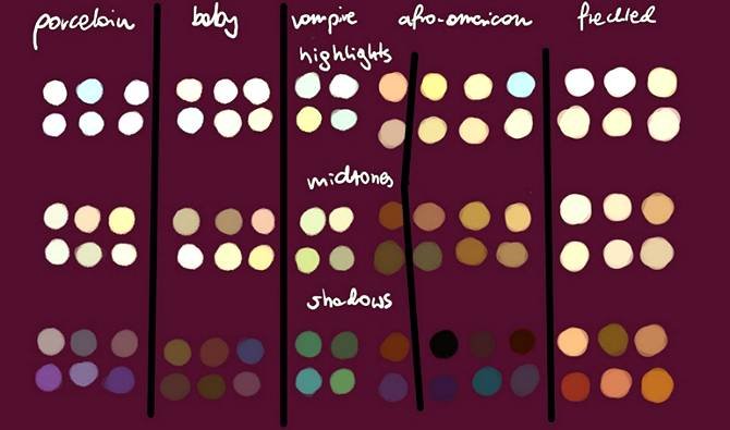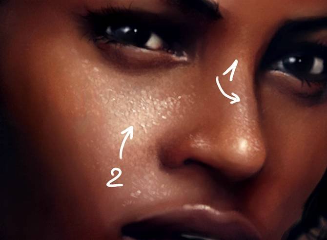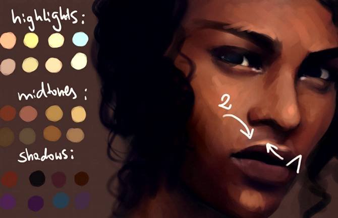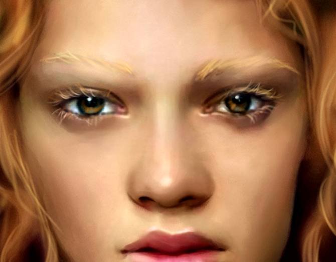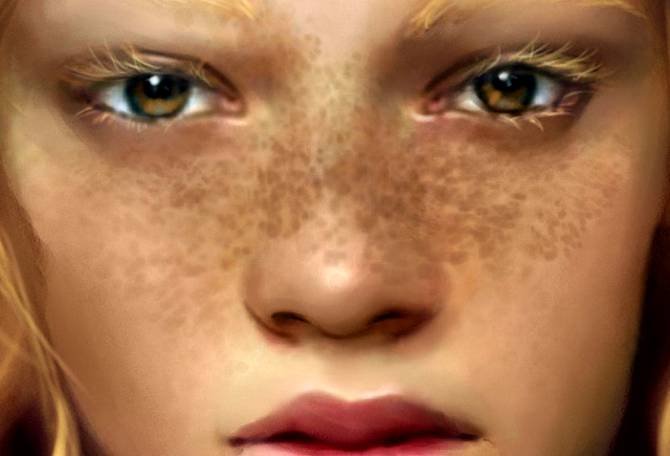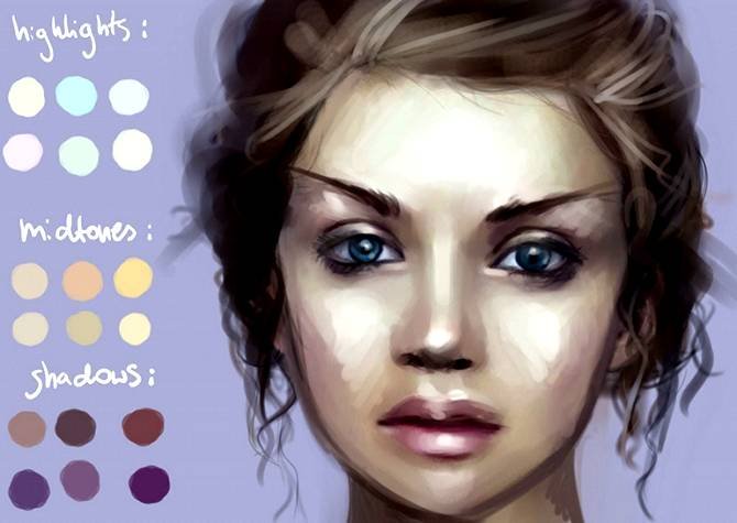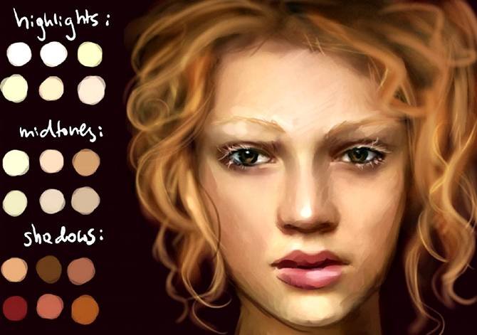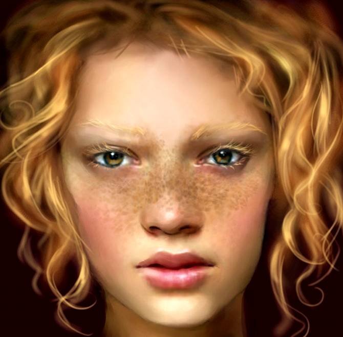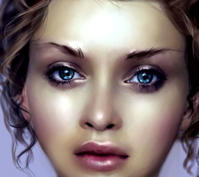 | Рисуем идеальную кожу, создаем реалистичный портретНа примере своих работ Marta Dahlig объяснит все, что необходимо знать для создания реалистичных портретов в Фотошопе. Рисование кожи — это одна из самых сложнейших задач, стоящая перед каждым художником фотореалистом. Для достижения действительно реалистичного эффекта, важно сочетание множества факторов — выбор цвета, методы смешивания, специально настроенные кисти и созданные текстуры. Также важно помнить, что к каждому типу кожи нужен свой подход. Для нежнейшей фарфоровой кожи требуется похожая техника, как и для прозрачной кожи, характерной для детей, но она кардинально отличается от методов, используемых при рисовании темной кожи. В этом уроке, я расскажу главные отличия в рисовании основных типов кожи, и обращу ваше внимание на важные анатомические особенности. Открою секреты и тонкости применения настроенных кистей для достижения желаемого эффекта. Также расскажу о определенных тонах кожи, поделюсь цветовой палитрой, чтобы вы могли научиться использовать ее в своих собственных работах. Этот урок не содержит основ по рисованию лица, он рассчитан на тех, кто уже знаком с базовыми знаниями и обладает навыками в рисовании лиц, а также знает общие правила в применении цвета и его смешивания. Однако, там где возможно, я напомню о самых важных вопросах на данном этапе рисования. Чтобы получить наибольшую эффективность от урока, у вас должна быть любая версия Фотошопа или Пейнтер не ниже 6 версии, а также планшет. Авторский секрет: Насыщенные цветаКогда вы создаете палитру для рисования лица, выбирайте действительно насыщенные цвета, исключение полутона (mildtones). Это важно, потому что цвета всегда наносятся с пониженной прозрачностью и поэтому немного теряют свою яркость. Ненасыщенные цвета с самого начала будут выглядеть, как серые и неинтересные. Также не стоит забывать, что если вы недовольны цветом, который выбрали, его всегда можно изменить пользуясь настройками Color Balance (Цветовой баланс). Обычно цвета выглядят более коричневыми, чтобы исправить это передвиньте красный ползунок Highlights (Света) влево, а синий ползунок Shadows (Тени) вправо. Фарфоровая![]() 1. Очень важен цветФарфоровая — это особенный и специфичный тип кожи, где главную роль играет выбор цвета. Хорошо известен факт, что блики (highlights), тени (shadows) и средние тона (mildtones) кожи должны быть различными по цвету, не важно какой тип кожи вы при этом рисуете. Это правило самое важное в рисовании фарфорового типа. Обычно этот эффект достигается выбором слегка насыщенных средних тонов (mildtones) и голубоватых теней (shadows). ![]() 2. Гладкая кожа!Гладкость — это второй важный момент в рисовании эффекта фарфоровой кожи. Обычно для хорошего результата достаточно пользоваться грубыми переходами в сочетании с дополнительными текстурами, но сейчас нам нужна идеальная гладкая поверхность. Для того, чтобы получить такой эффект, вначале рисуем грубые переходы (Твердая круглая кисть (Hard Round Brush) в фотошоп или Blender в пейнтере), определив основные формы, далее переходим к проработке мягких переходов (только Add Water в пейнтере или любая кисть с включенной опцией аэрограф (Airbrush) с небольшим значением непрозрачности (opacity) в фотошоп), чтобы смягчить переходы. ![]() 3. Забудьте о текстурахЯ всегда подчеркиваю необходимость использования текстур для достижени