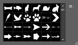 Щёлкните на категорию и нажмите кнопку OK в окне подтверждения, чтобы отобразить фигуры желаемой группы. На рисунке ниже изображены элементы категории Музыка.
