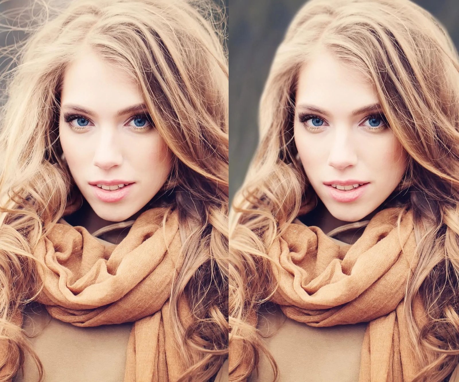 Сравните первоначальное и финальное изображения. Мы сократили объем волос модели, при этом сохранив их естественный вид.