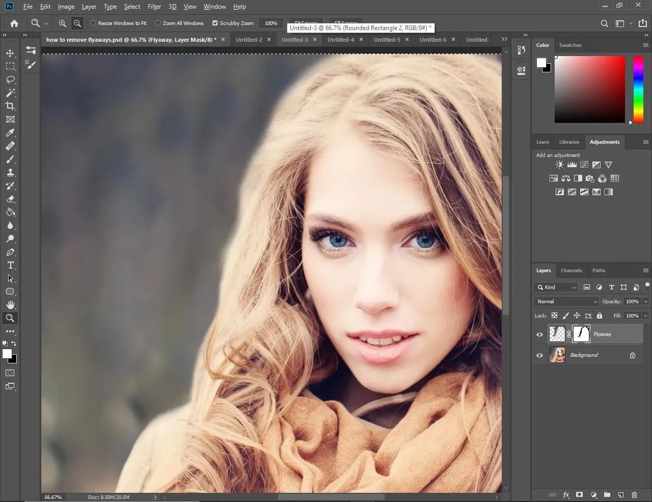 В этом руководстве вы узнаете, как убрать торчащие волосы на голове с помощью Photoshop.