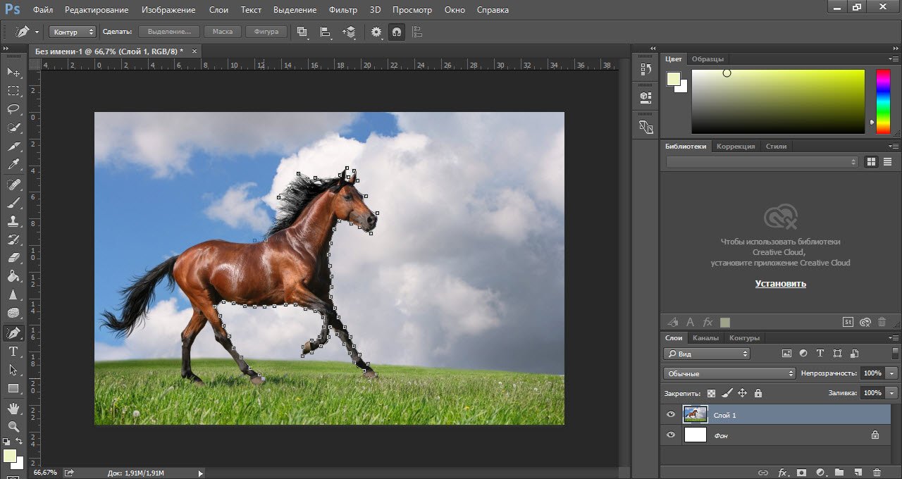 Испробуем рассматриваемый инструмент на практике, выделив с помощью него лошадь на этой картинке.