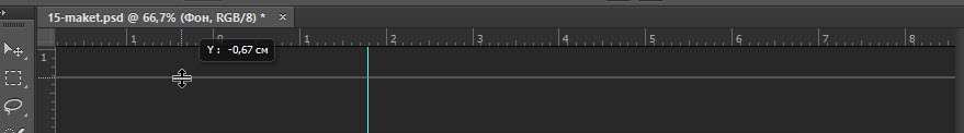 Для вытягивания горизонтальной направляющей щёлкните на верхней линейке кнопкой мыши и, не отпуская её, перемещайте указатель вниз до тех пор, пока направляющая не займёт нужное положение. Чтобы вытянуть вертикальную линию, проделайте всё то же самое, только перемещайте указатель вправо от расположенной слева линейки.