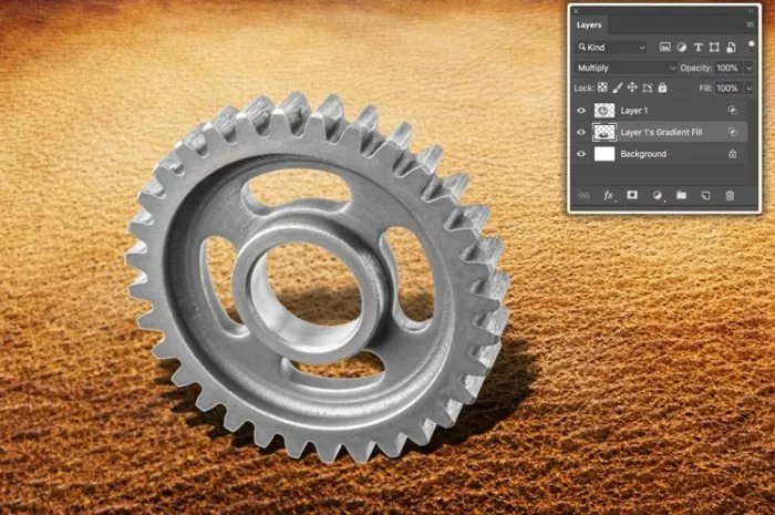 Теперь у нас есть мягкий градиент на одном конце объекта. Осталось превратить его в тень, изменив режим наложения слоев на «