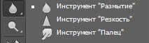 Группа состоит из инструментов Размытие, Резкость и Палец.