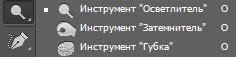 Группа инструментов, состоящая из Осветлителя, Затемнителя и Губки.