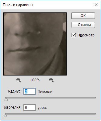 Дефекты слишком портят снимок, и частично решить проблему в максимально короткий срок поможет фильтр Пыль и царапины. Для его применения сделайте следующее.