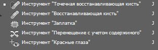 Группа средств ретуширования, открывающаяся по щелчку на значке , состоит из пяти инструментов.