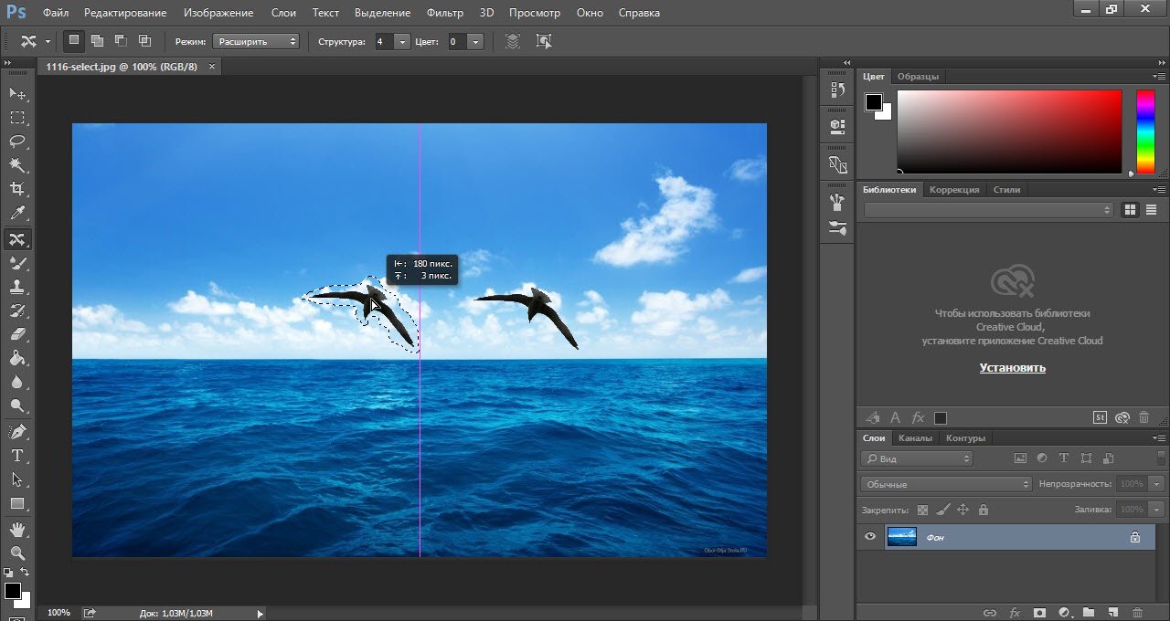 Сразу после того, как вы отпустите кнопку мыши, картинка станет другой: чайка будет замещена пикселями выбранной области.