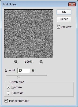 Теперь нам нужно добавить собственную искусственную текстуру кожи, чтобы кожа модели после того как была осуществлена ретушь фото в Фотошопе не выглядела неестественно гладкой. Создайте новый слой и назовите его “Skin Texture Small”. Перейдите в Редактирование> Выполнить заливку и выберите в открывшемся окне 50% серого. Затем перейдите в Фильтр> Шум> Добавить шум и добавьте 25% шума.