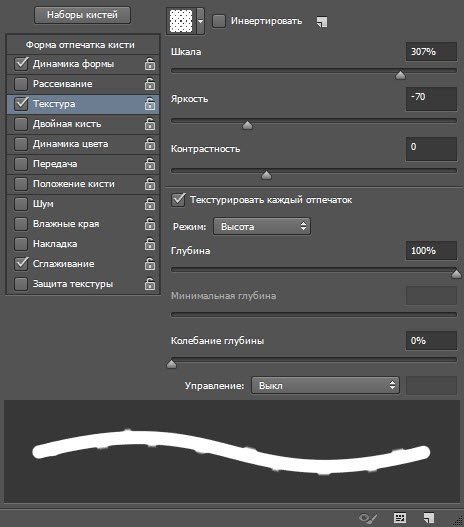 Защита текстуры. Установите этот флажок если хотите, чтобы текстура, заданная в настройках выбранной кисти по умолчанию, не подменяла установленную вами.