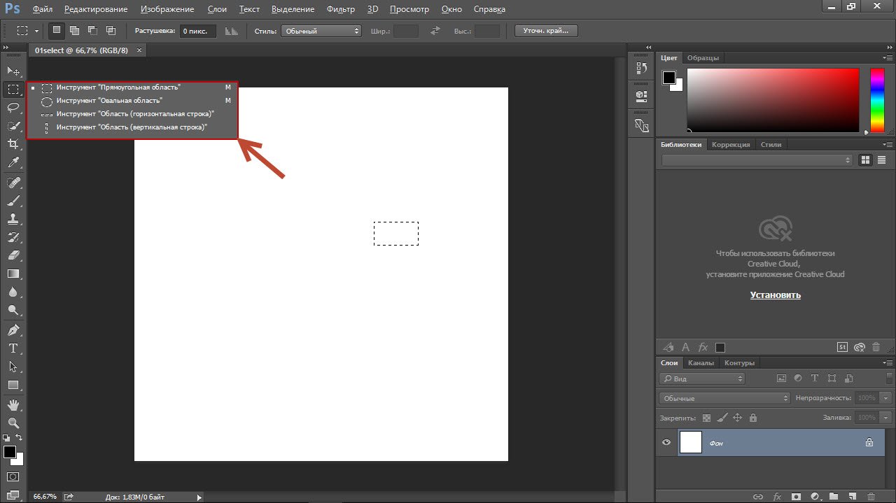 За выделение отвечает специальная группа инструментов. Выберите Прямоугольное выделение.