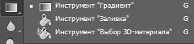 Примерно так же работает и другой инструмент заливки — Градиент, только на панели параметров вместо источника цвета нужно выбрать сам градиент, а вместо шаблона — тип градиента.