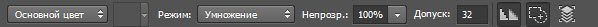 Со сменой рабочего инструмента изменились элементы панели параметров. Она расположена под строкой меню и служит для тонкой настройки выбранного инструмента.