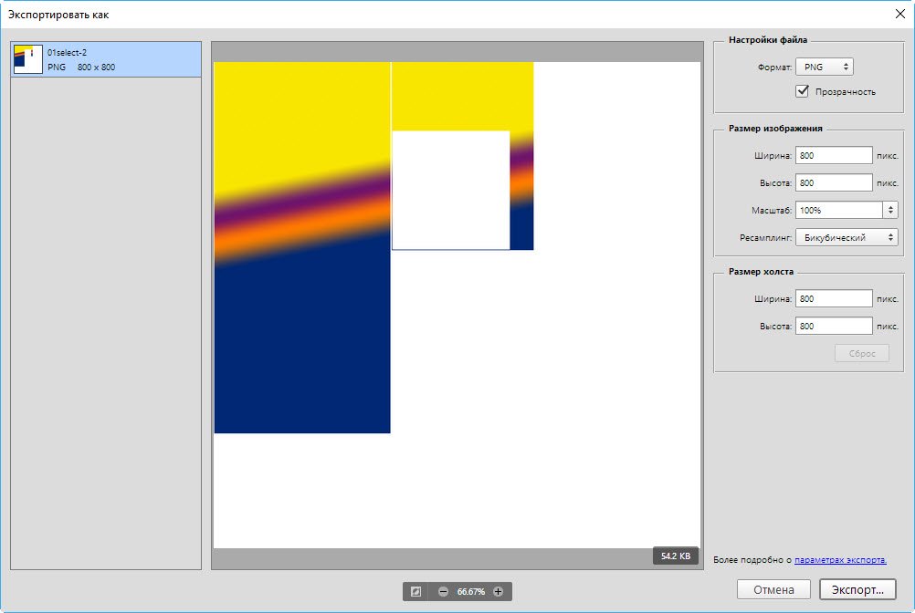 Если же вы хотите сохранить файл в качестве обыкновенной картинки — выполните команду Файл -> Экспортировать -> Экспортировать как, в открывшемся окне задайте подходящий формат, нажмите кнопку Экспорт, укажите имя и расположение файла, а затем нажмите Сохранить.