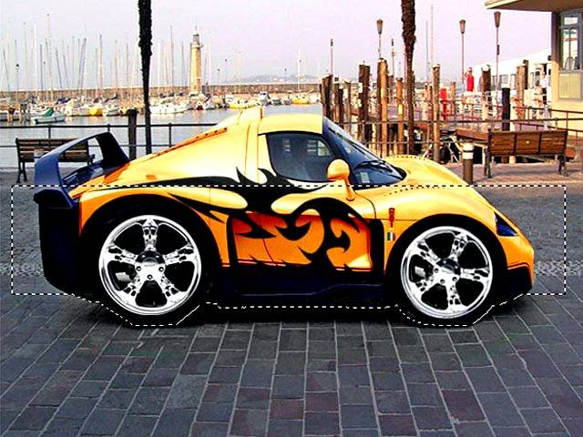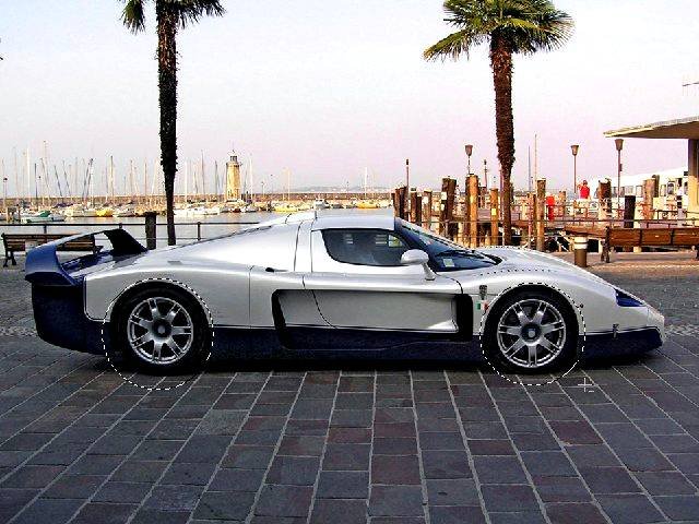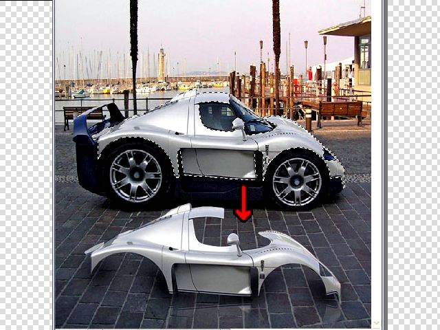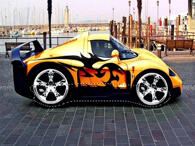 | Уменьшаем размер машины, создаем мини-суперкарВ этом уроке мы рассмотрим, как сделать мини-суперкар из обычного путем фотоманипуляций. Подберите себе изображение суперкара (на свой вкус) и приготовьтесь к минимизации и покраске. 1. Возьмите высококачественное фото суперкара. Я использовал это фото, но вы можете использовать любое другое. Возьмите инструмент Elliptical Marquee Tool (Инструмент «Овальная область» / Клавиша «M») и выделите оба колеса (что бы создавать второе выделение не сбивая первого, зажмите клавишу Shift). Сделайте копию слоя (нажав сочетание клавиш «Ctrl+J»), чтобы поместить колеса на новый слой. ![]() 2. Сделайте слой с колесами невидимым (нажав на изображение глазика). Встаньте на слой с самой машиной и нажмите Ctrl+T для использования Free Transform (Редактирование - Свободное трансформирование / Сочетание клавиш «Ctrl+T»). Сузьте изображение на половину от его оригинального размера, примерно так: ![]() 3. Сделайте слой с колесами видимым и немного сдвиньте их примерно на то место, где были оригинальные колеса. Также сделайте передние колеса немного меньше, чем задние. ![]() 4. Возьмите инструмент Eraser Tool (Инструмент «Ластик» / Клавиша «E») и сотрите те части, что вам не нравятся, на слое с колесами. ![]() 5. Если вы не получили удовлетворительного результата, то вернитесь к слою с оригинальной машиной и используйте инструмент Clone Stamp Tool (Инструмент «Штамп» / Клавиша «S») для клонирования цвета и формы отдельной частей машины. ![]() 6. Войдите в режим быстрой маски (Клавиша «Q») и выберите инструмент Brush Tool (Инструмент «Кисть» / Клавиша «B»). Выберите кисть с жесткими краями и закрасьте те части машины, которые вы хотите окрасить. Когда закончите, вернитесь в обычный режим (нажав клавишу «Q»). Окрашенные части остались выделенными. Сделайте копию слоя (Ctrl+J), чтобы разместить наши части под покраску на новом слое. ![]() ![]() 7. Встаньте на слой с вырезанными частями и зайдите в меню Image - Adjustments - Color Balance (Изображение - Коррекция - Цветовой баланс / Сочетание клавиш «Ctrl+B»), чтобы перекрасить их. Я использовал следующие значения: Shadows (Тени): 50, 0, -60; Midtones (Средние тона): 60, 0, -60; Highlights (Света): 40, 0, -45; Когда результат вас удовлетворит нажмите Ok, чтобы сохранить параметры настройки. ![]() 8. Я посчитал нужным добавить на машину винил в виде трайбла. Разместите его на кузове и, используя инструмент Free Transform (Редактирование - Свободное трансформирование / Сочетание клавиш «Ctrl+T»), измените размеры и расположите его, примерно как на изображении ниже: ![]() 9. Также я решил поставить другие большие диски взамен оригинальных. Я использовал эти. Для это снова используем инструмент Free Transform (Редактирование - Свободное трансформирование / Сочетание клавиш «Ctrl+T») чтобы изменить размер и поставить колёса на место старых. ![]() 10. Слейте все слои, например из меню: Layer - Flatten Image (Слои - Выполнить сведение). Возьмите инструмент Lasso Tool (Инструмент «Лассо») и выделите (в «черновом» варианте, небрежно) нижнюю часть автомобиля, как у меня. Сделайте копию слоя (Ctrl+J), тем самым поместив выделенную часть авто на новый слой. ![]() 11. Создайте новый слой (Ctrl+Shift+N) и используйте инструмент Lasso Tool (Инструмент «Лассо») для выделения нижней части авто меньшего размера. Убедитесь, что вы создали новый слой позади слоя с нижней частью автомобиля, который мы создали в предыдущем шаге. ![]() 12. Залейте выделение с помощью инструмента Paint Bucket Too