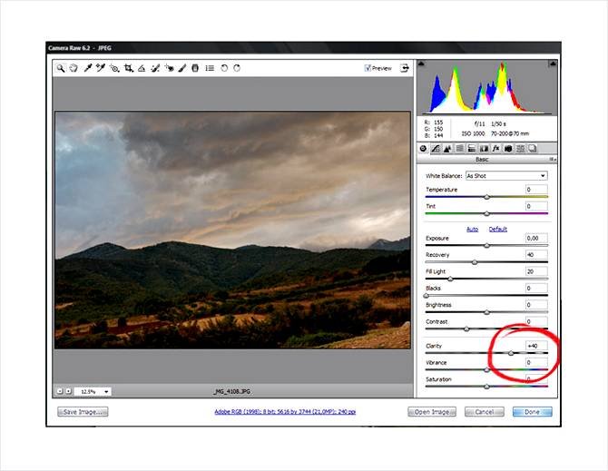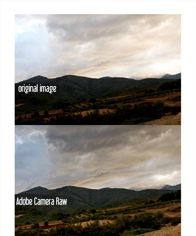 | Обработка фотографии пейзажа и Adobe Camera RawВ этом уроке, на примере пейзажа, будут показаны шаги и уловки, которые помогут преобразить ваше фото в лучшую сторону и вытянуть из него много больше, чем вы получили при самой съемке. Данная работа будет сделана посредством Adobe Camera Raw (ACR) и Фотошопом. Также приветствуются базовые познания мира фотографии и смысл вносимых коррекций. Имейте в виду, что все параметры настроек исходят от конкретного изображения и в иных фотографиях вы должны учитывать ИХ характеристики (размеры оригинального фото были 5616 на 3744рх). Ниже вы видите каким снимок был изначально и каким он станет после внесенных коррекций: Шаг 01 – Выбор фотографииВыберите фотографию, которую хотите отредактировать. казалось бы, очевидное действо, но все же здесь важны некоторые критерии, ведь не с каждой фотографией имеет смысл возиться. Фотошоп хорош, как улучшитель изображения, но все же он не Мессия — он может превратить хорошие изображения в удивительные, посредственные повысить до хороших, а плохие подтянуть только до посредственных (здесь идет речь именно о свето- и цветокоррекции без значительных затрат по времени и ресурсам). Хорошо снятый пейзаж сохраняет максимально возможную информацию о цифровом цвете и динамическом диапазоне. Самой большой проблемой в фотографировании пейзажей является экспозиционное различие между небом и землей, если вы, конечно, не пользуетесь специальными фильтрами для объектива, способными это предотвратить. при ярком дневном свете данное различие может достигать 12-ть шагов, в то время как разница становится значительно меньшей при восходе или закате солнца (до шести стопов). В этом уроке мы будем работать над посредственной фотографией, снятой во время заката. будут выполнены разные операции по работе с экспозицией, проработкой баланса белого, контраста, яркости и насыщенности цветов. Но важным моментом является тот факт, что экспозиционное различие между небом и землей не должно превышать 6—7 шагов. Этот снимок сделан чистой линзой, без какого либо поляризационного или градиентного фильтра. Причем заметьте, мы работаем с обычным Jpeg-ом, а не равом. Имея же рав, у вас будет еще больше возможностей: ![]() Шаг 02 — Открытие фотографии в Adobe Camera Raw (ACR)Откройте изображение через ACR (File—Open as... —здесь выделяем нужную фотографию, а в списке форматов выбираем Camera Raw). Сначала хорошо изучите изображение и подумайте, что можно было бы сделать, чтобы достичь лучшего качества. Никакой инструмент Фотошопа не заменит наметанный глаз и преставление желаемого результата, поэтому проведите некоторое время за самостоятельной оценкой фотографии. Даже если ваши навыки в фотошопе невелики, ваша интуиция и оценочные способности смогут повыситься просто при наблюдении и анализе. Так, я отметил при анализе этого изображения несколько недостатков. Красным цветом я обвел 4-ре основных из них: 1. различие экспозиции между землей и небом (хорошо заметно на гистограмме); 2. растения слишком темные и там не хватает света; 3. бледная и менее контрастная область по сравнению с остальной частью земли; 4. минимальная видимая детализированость неба. И вообще у этого изображения очень низкая контрастность, оно выглядит блекло и недодержано. Но в небольшой гистограмме, имеющейся в ACR, вы можете видеть, что потери информации, как та