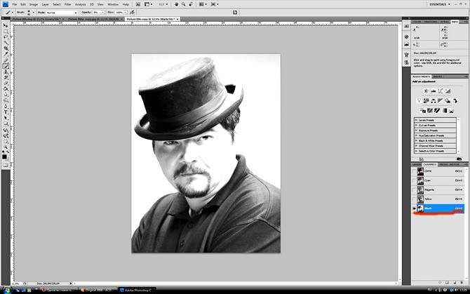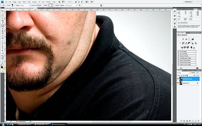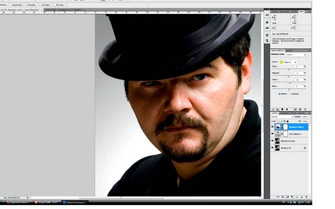 | Ретушь мужского портрета, постобработка и цветокоррекцияВ этом уроке Фотошопа мы рассмотрим ретушь мужского портрета, постобработку и цветокоррекцию. ![]() ![]() 1. Дублирую слой (Ctrl+J). Кистью Brush Tool (Инструмент «Кисть» / Клавиша «B») вычищаю кожу о всяких неровностей и пятен. ![]() ![]() 2. Создаю слой Layer - New Adjustment Layer - Color Balance (Слои - Новый корректирующий слой - Цветовой баланс) корректирую цвет карточки так, чтоб было преимущественно больше жёлтого. Создаю еще слой Layer - New Adjustment Layer - Selective Color (Слои - Новый корректирующий слой - Выборочная коррекция цвета) и еще немного приглушаю красный. ![]() 3. Создаю еще два слоя 1copy и 1copy2. Слою 1copy изменяю режим наложения на Screen (Экран), на слое 1copy2 делаю маску и кистью Brush Tool (Инструмент «Кисть» / Клавиша «B») 20%, протираю темные места и чуть осветляю глаза и те места которые могут делать объем , это складки на футболке, блики на шляпе и т.д. ![]() Сливаю все слои в один (Layer - Flatten Image (Слои - Выполнить сведение))... 4. Создаю дубликат карточки. Image - Duplicate (Изображение - Создать дубликат) – Ok, перевожу созданный дубликат в пространство CMYK Image - Mode - CMYK color (Изображение - Режим - CMYK). 5. Карточку RGB разбиваю на каналы (Window-Channels), выбираю канал Green (Зеленый), выделяю этот канал и копирую его Ctrl+C. Затем перехожу в созданный дубликат с пространством CMYK, так же разбиваю карточку на каналы и выбираю черный канал, вставляю туда скопированный нами зеленый канал Green (Зеленый)... Ctrl+V. ![]() ![]() 6. Полученный результат уже начинает радовать меня, карточка стала более фактурной и насыщенной. Перевожу дубликат в RGB пространство и продолжаю дорабатывать. Навожу резкость, дублирую слой Filter - Other - High Pass (Фильтр - Другое - Цветовой контраст) полученное перевожу в режим наложения Overlay (Перекрытие). ![]() 7. Накладываю сверху заготовленную текстуру, слегка размываю ее используя Filter - Blur - Gaussian Blur (Фильтр - Размытие - Размытие по Гауссу) 36,4 и перевожу этот слой в режим наложения Soft Light (Мягкий свет), немного убираю прозрачность и чуток протираю на свой вкус те места где мне не хотелось бы чтоб наложенная текстура сильно просматривалась.. ![]() ![]() 8. Дальше чисто на свой индивидуальный вкус, я немного корректирую полученный результат в Image - Adjustments - Color Balance (Изображение - Коррекция - Цветовой баланс / Сочетание клавиш «Ctrl+B»). 9. Создаю чистый слой, выбираю красный и кистью подрисовываю румянец и чуть подкрашиваю губы, затем выбираю зеленый и чуток подкрашиваю глаза и вот собственно полученный результат... ![]() |