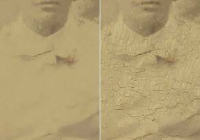 | Удаляем трещины со старого фотоВ этом уроке мы рассмотрим ретушь старой фотографии средствами Фотошопа. Стал актуальным вопрос удаления трещин с фотографии, своеобразной такой «паутины». ![]() Все шаги в этом руководстве, по сути, есть в тех или иных уроках... Поэтому сие описание, скорее, адресовано начинающим, которые ищут способы ретуши старой фотографии. Копируем слой с нашей растрескавшейся фотографией одним из следующих способов: Сочетанием клавиш Ctrl+J; Layer - Duplicate Layer (Слои - Создать дубликат слоя); Или просто перетаскиванием слой Background (фон) на иконку нового слоя. ![]() Новый слой назовем как угодно, я оставил по умолчанию «Background Copy» (фон копия). Теперь, к созданному слою нужно применить фильтр Filter - Noise - Dust & Scratches (Фильтр - Шум - Пыль и царапины) настройки для каждого случая уникальны, устанавливаем «на глаз». ![]() Дальше можно пойти разными путями: воспользоваться инструментом History Brush Tool (Инструмент «Архивная кисть» / Клавиша «Y») или создать маску слоя Layer - Layer Masc - Hide All (Слои - Слой-маска - Скрыть все)... Вариант 1: History Brush Tool (Инструмент «Архивная кисть» / Клавиша «Y»)Выбираем инструмент, устанавливаем нужную нам прозрачность (в этом примере я использовал 70%) и в окне History (Window - History (Окно - История)) ставим значок кисти напротив шага «Dust & Scratches» (Пыль и царапины), а потом «откатываемся» на момент ДО применения фильтра. ![]() Далее: рисуем по трещинам. Вариант 2: Layer Masc (Слой-маска)Выбираем Layer - Layer Masc - Hide All (Слои - Слой-маска - Скрыть все). В палитре слоёв у нас появится черный квадратик напротив слоя: ![]() Теперь выбираем обычную кисть, выставляем ей прозрачность, размер... и рисуем по трещинам. Получаем примерно такой результат: ![]() Чтобы окончательно все сгладить, можно применить фильтр Filter - Blur - Surface Blur (Фильтр - Размытие - Размытие по поверхности). ![]() После всех манипуляций получаем вот такой, неплохой, в принципе, результат... ![]() И для большей реалистичности результата нужно добавить шум, своеобразную зернистость... Для этого создаем новый слой поверх всех и заливаем его 50% Gray (50% серого) (сочетанием клавиш Shift + F5, либо через меню Edit - Fill (Редактирование - Выполнить заливку)). ![]() Теперь добавляем шум Filter - Noise - Add Noise (Фильтр - Шум - Добавить шум). ![]() И выбираем режим наложения слоя Overley (Перекрытие) или, может быть, Hard Light (Жесткий свет). ![]() Вот и все. Удачи. ![]() |