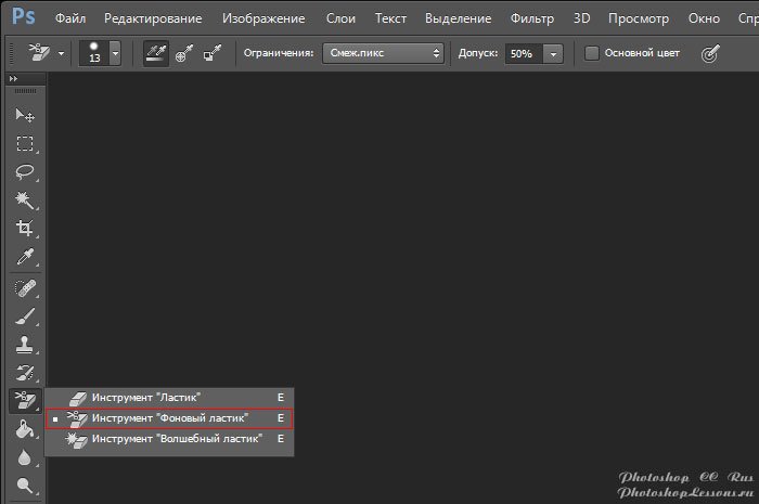 | Перевод Background Eraser Tool (Инструмент «Фоновый ластик» / E)Перевод и месторасположение Background Eraser Tool (Инструмент «Фоновый ластик» / E) на примере Photoshop CC (Eng/Rus). Подробный урок по инструменту «Background Eraser Tool» (Инструмент «Фоновый ластик» / Клавиша «E»). На изображениях ниже вы можете наглядно увидеть месторасположение и перевод Background Eraser Tool (Инструмент «Фоновый ластик» / Клавиша «E») на примере Английской и Русской версии Photoshop CC. ![]() ![]() |