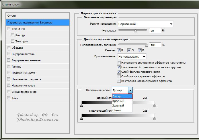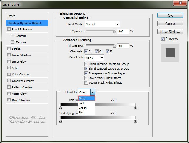 | Перевод Blending Option - Blend If: Gray (Параметры наложения - Наложение, если: Гр. сер.)Перевод и месторасположение Blending Option - Blend If: Gray (Параметры наложения - Наложение, если: Гр. сер.) на примере Photoshop CC (Eng/Rus). Узнать как перейти в Blending Option (Параметры наложения / Окно «Стиль слоя» (Layer Style)) можно в материале по ссылке - «Как перейти в Blending Option (Параметры наложения) в Фотошопе». На изображениях ниже вы можете наглядно увидеть месторасположение и перевод Blending Option - Blend If: Gray (Параметры наложения - Наложение, если: Гр. сер.) на примере Английской и Русской версии Photoshop CC (2014). ![]() ![]() |