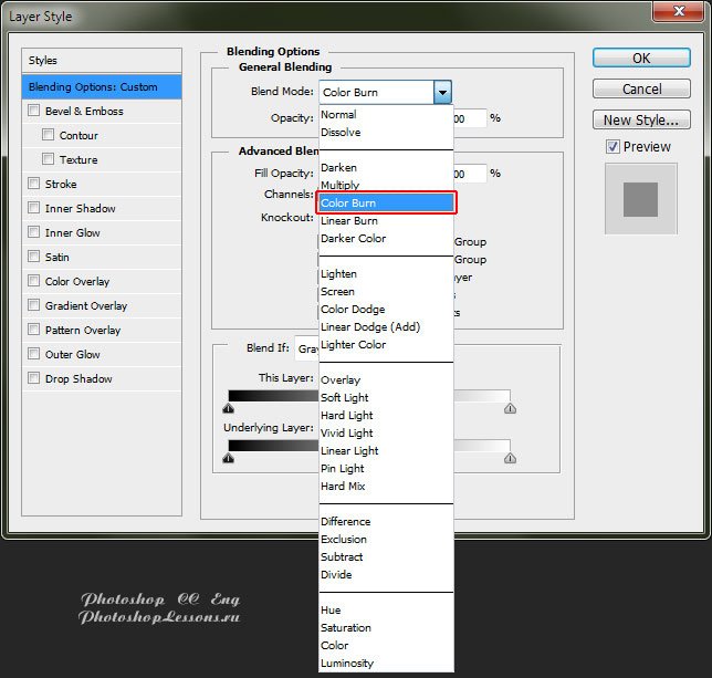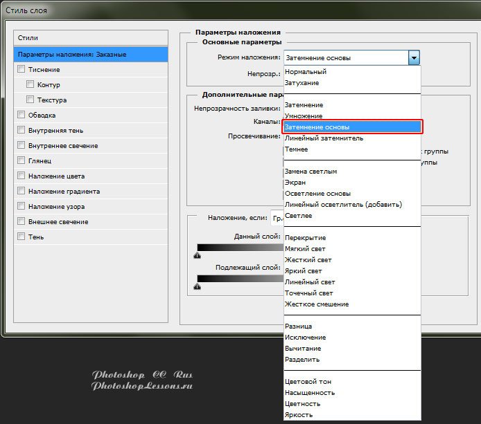 | Перевод Blending Option - Blend Mode - Color Burn (Параметры наложения - Режим наложения - Затемнение основы)Перевод и месторасположение Blending Option - Blend Mode - Color Burn (Параметры наложения - Режим наложения - Затемнение основы) на примере Photoshop CC (Eng/Rus). Узнать как перейти в Blending Option (Параметры наложения / Окно «Стиль слоя» (Layer Style)) можно в материале по ссылке - «Как перейти в Blending Option (Параметры наложения) в Фотошопе». На изображениях ниже вы можете наглядно увидеть месторасположение и перевод Blending Option - Blend Mode - Color Burn (Параметры наложения - Режим наложения - Затемнение основы) на примере Английской и Русской версии Photoshop CC (2014). ![]() ![]() Про режимы наложения слоев можно почитать в материале - «Режимы наложения слоев (Blending Modes)». |