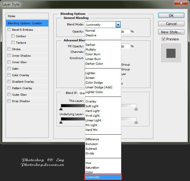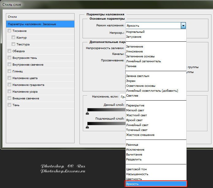 | Перевод Blending Option - Blend Mode - Luminosity (Параметры наложения - Режим наложения - Яркость)Перевод и месторасположение Blending Option - Blend Mode - Luminosity (Параметры наложения - Режим наложения - Яркость) на примере Photoshop CC (Eng/Rus). Узнать как перейти в Blending Option (Параметры наложения / Окно «Стиль слоя» (Layer Style)) можно в материале по ссылке - «Как перейти в Blending Option (Параметры наложения) в Фотошопе». На изображениях ниже вы можете наглядно увидеть месторасположение и перевод Blending Option - Blend Mode - Luminosity (Параметры наложения - Режим наложения - Яркость) на примере Английской и Русской версии Photoshop CC (2014). ![]() ![]() Про режимы наложения слоев можно почитать в материале - «Режимы наложения слоев (Blending Modes)». |