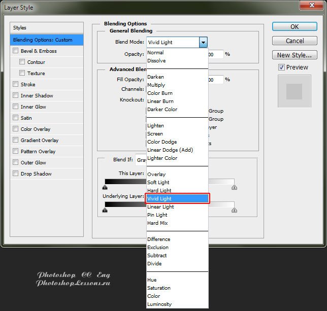 | Перевод Blending Option - Blend Mode - Vivid Light (Параметры наложения - Режим наложения - Яркий свет)Перевод и месторасположение Blending Option - Blend Mode - Vivid Light (Параметры наложения - Режим наложения - Яркий свет) на примере Photoshop CC (Eng/Rus). Узнать как перейти в Blending Option (Параметры наложения / Окно «Стиль слоя» (Layer Style)) можно в материале по ссылке - «Как перейти в Blending Option (Параметры наложения) в Фотошопе». На изображениях ниже вы можете наглядно увидеть месторасположение и перевод Blending Option - Blend Mode - Vivid Light (Параметры наложения - Режим наложения - Яркий свет) на примере Английской и Русской версии Photoshop CC (2014). ![]() ![]() Про режимы наложения слоев можно почитать в материале - «Режимы наложения слоев (Blending Modes)». |