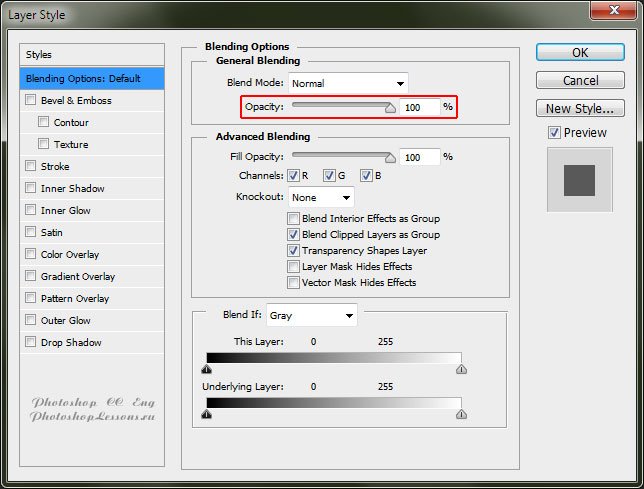 | Перевод Blending Option - Opacity (Параметры наложения - Непрозрачность)Перевод и месторасположение Blending Option - Opacity (Параметры наложения - Непрозрачность) на примере Photoshop CC (Eng/Rus). Узнать как перейти в Blending Option (Параметры наложения / Окно «Стиль слоя» (Layer Style)) можно в материале по ссылке - «Как перейти в Blending Option (Параметры наложения) в Фотошопе». На изображениях ниже вы можете наглядно увидеть месторасположение и перевод Blending Option - Opacity (Параметры наложения - Непрозрачность) на примере Английской и Русской версии Photoshop CC (2014). ![]() ![]() |