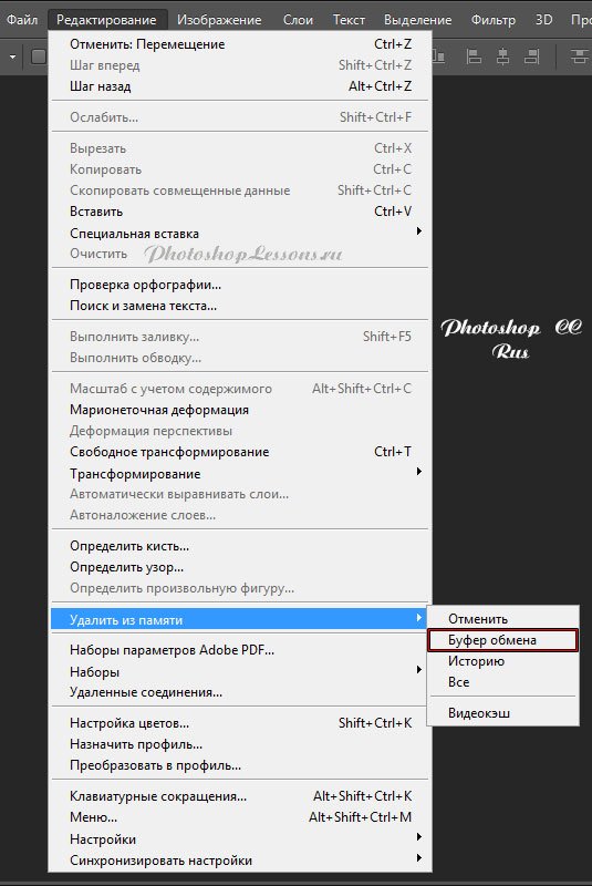 | Перевод Edit - Purge - Clipboard (Редактирование - Удалить из памяти - Буфер обмена)Перевод и месторасположение Edit - Purge - Clipboard (Редактирование - Удалить из памяти - Буфер обмена) на примере Photoshop CC (Eng/Rus). На изображениях ниже вы можете наглядно увидеть месторасположение и перевод термина Edit - Purge - Clipboard (Редактирование - Удалить из памяти - Буфер обмена) на примере Английской и Русской версии Photoshop CC (2014). ![]() ![]() |