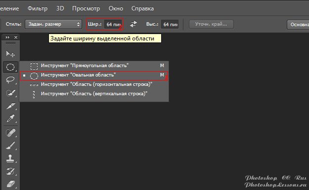 | Перевод Elliptical Marquee Tool - Width (Инструмент «Овальная область» - Ширина)Перевод и месторасположение Elliptical Marquee Tool - Width (Инструмент «Овальная область» - Ширина) на примере Photoshop CC (Eng/Rus). Настройка параметра ширины и высоты для инструмента «Овальная область» доступна если выбран стиль (style) выделения «Заданные пропорции» (Fixed Ratio) или «Заданный размер» (Fixed Size). На изображениях ниже вы можете наглядно увидеть месторасположение и перевод Elliptical Marquee Tool - Width (Инструмент «Овальная область» - Ширина) на примере Английской и Русской версии Photoshop CC (2014). ![]() ![]() |