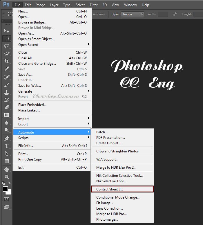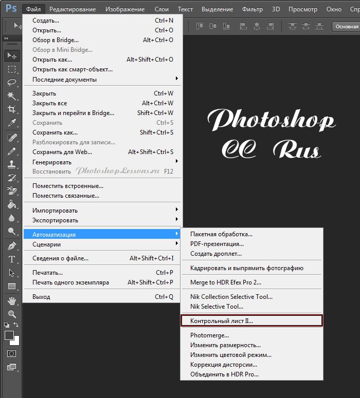 | Перевод File - Automate - Contact Sheet 2 (Файл - Автоматизация - Контрольный лист 2)Перевод и месторасположение File - Automate - Contact Sheet 2 (Файл - Автоматизация - Контрольный лист 2) на примере Photoshop CC (Rus/Eng). На изображении ниже вы можете наглядно увидеть месторасположение и перевод термина File - Automate - Contact Sheet 2 (Файл - Автоматизация - Контрольный лист 2) на примере Русской и Английской версии Photoshop CC (2014). ![]() ![]() |