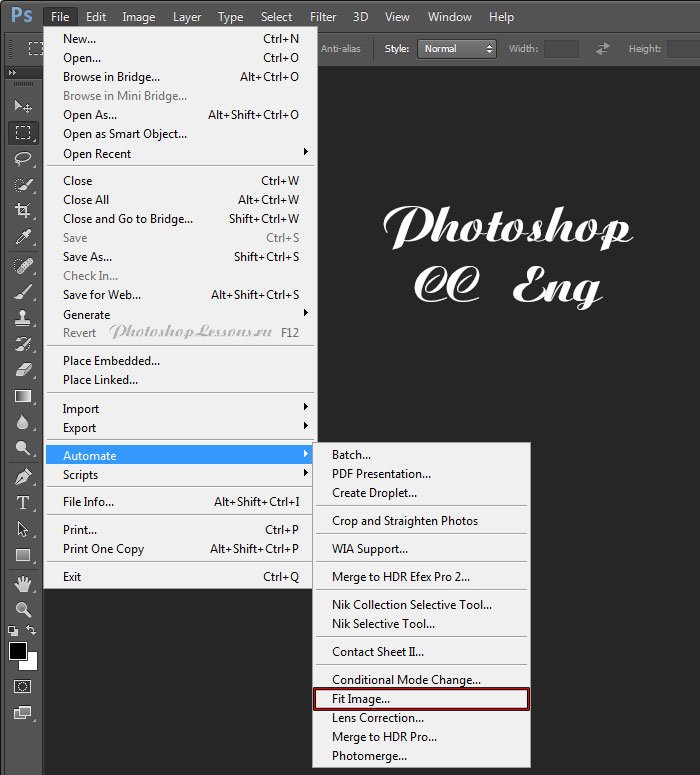 | Перевод File - Automate - Fit Image (Файл - Автоматизация - Изменить размерность)Перевод и месторасположение File - Automate - Fit Image (Файл - Автоматизация - Изменить размерность) на примере Photoshop CC (Rus/Eng). На изображениях ниже вы можете наглядно увидеть месторасположение и перевод термина File - Automate - Fit Image (Файл - Автоматизация - Изменить размерность) на примере Русской и Английской версии Photoshop CC (2014). ![]() ![]() |