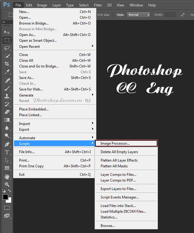 | Перевод File - Scripts - Image Processor (Файл - Сценарии - Обработчик изображений)Перевод и месторасположение File - Scripts - Image Processor (Файл - Сценарии - Обработчик изображений) на примере Photoshop CC (Rus/Eng). На изображениях ниже вы можете наглядно увидеть месторасположение и перевод термина File - Scripts - Image Processor (Файл - Сценарии - Обработчик изображений) на примере Русской и Английской версии Photoshop CC (2014). ![]() ![]() |