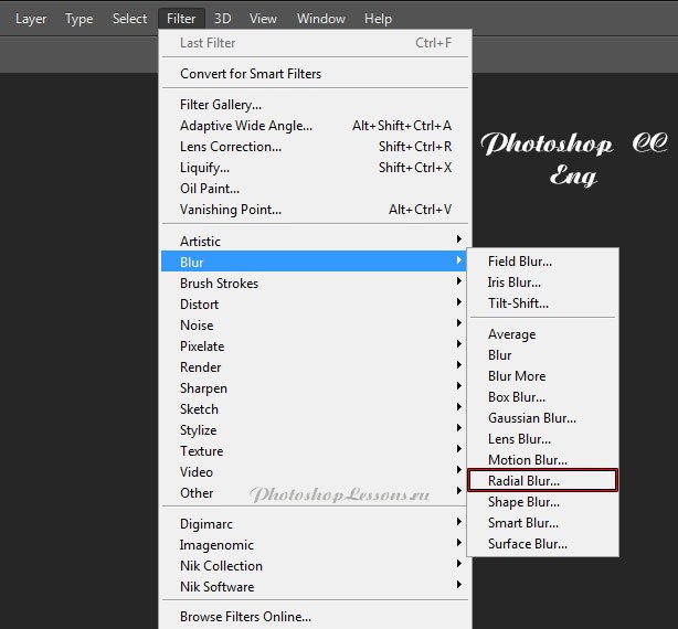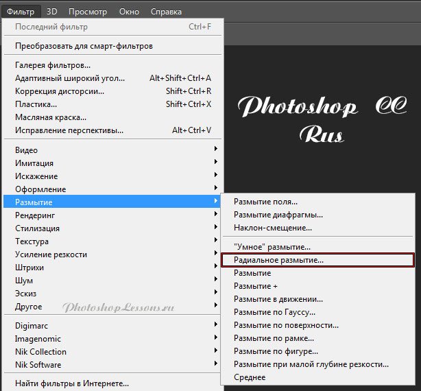 | Перевод Filter - Blur - Radial Blur (Фильтр - Размытие - Радиальное размытие)Перевод и месторасположение Filter - Blur - Radial Blur (Фильтр - Размытие - Радиальное размытие) на примере Photoshop CC (Eng/Rus). На изображениях ниже вы можете наглядно увидеть месторасположение и перевод термина Filter - Blur - Radial Blur (Фильтр - Размытие - Радиальное размытие) на примере Английской и Русской версии Photoshop CC (2014). ![]() ![]() |