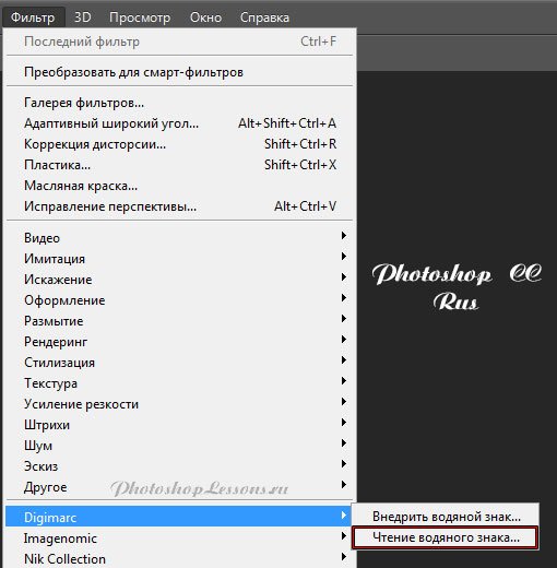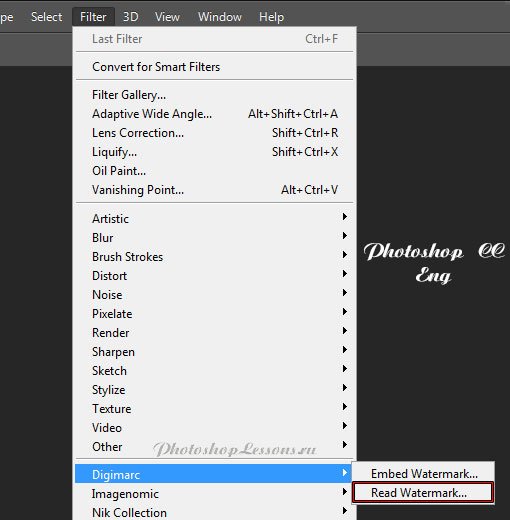 | Перевод Filter - Digimarc - Read Watermark (Фильтр - Digimarc - Чтение водяного знака)Перевод и месторасположение Filter - Digimarc - Read Watermark (Фильтр - Digimarc - Чтение водяного знака) на примере Photoshop CC (Eng/Rus). На изображениях ниже вы можете наглядно увидеть месторасположение и перевод термина Filter - Digimarc - Read Watermark (Фильтр - Digimarc - Чтение водяного знака) на примере Английской и Русской версии Photoshop CC (2014). ![]() ![]() |