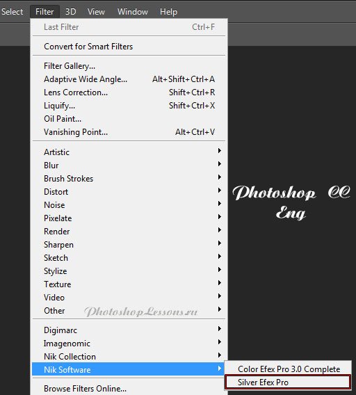 | Filter - Nik Software - Silver Efex ProМесторасположение Filter - Nik Software - Silver Efex Pro (Фильтр - Nik Software - Silver Efex Pro) на примере Photoshop CC (Eng/Rus). На изображениях ниже вы можете наглядно увидеть месторасположение Filter - Nik Software - Silver Efex Pro (Фильтр - Nik Software - Silver Efex Pro) на примере Английской и Русской версии Photoshop CC (2014). ![]() ![]() |