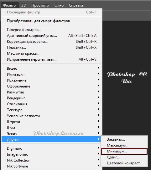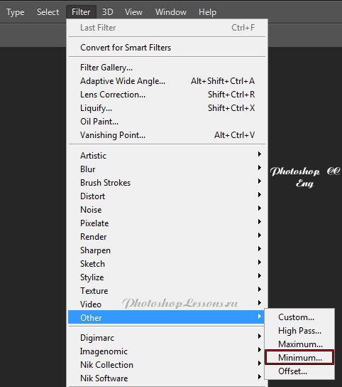 | Перевод Filter - Other - Minimum (Фильтр - Другое - Минимум)Перевод и месторасположение Filter - Other - Minimum (Фильтр - Другое - Минимум) на примере Photoshop CC (Eng/Rus). На изображениях ниже вы можете наглядно увидеть месторасположение и перевод термина Filter - Other - Minimum (Фильтр - Другое - Минимум) на примере Английской и Русской версии Photoshop CC (2014). ![]() ![]() |