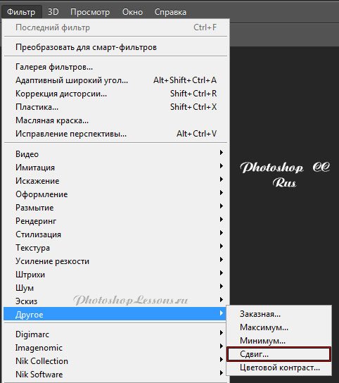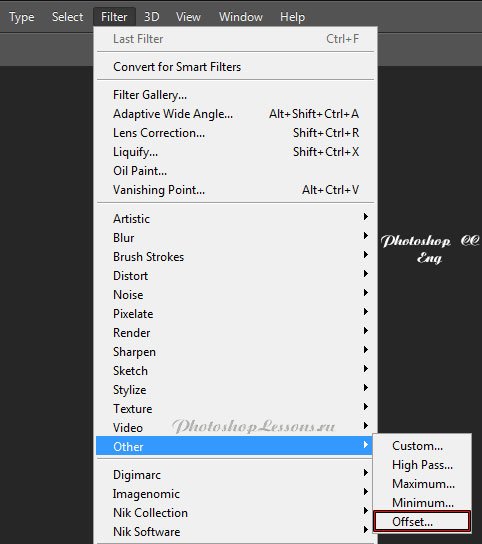 | Перевод Filter - Other - Offset (Фильтр - Другое - Сдвиг)Перевод и месторасположение Filter - Other - Offset (Фильтр - Другое - Сдвиг) на примере Photoshop CC (Eng/Rus). На изображениях ниже вы можете наглядно увидеть месторасположение и перевод термина Filter - Other - Offset (Фильтр - Другое - Сдвиг) на примере Английской и Русской версии Photoshop CC (2014). ![]() ![]() |