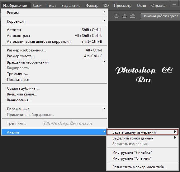 | Перевод Image - Analysis - Set Measurement Scale (Изображение - Анализ - Задать шкалу измерений)Перевод Image - Analysis - Set Measurement Scale (Изображение - Анализ - Задать шкалу измерений) на примере Photoshop CC (Eng/Rus). На изображениях ниже вы можете наглядно увидеть месторасположение и перевод термина Image - Analysis - Set Measurement Scale (Изображение - Анализ - Задать шкалу измерений) на примере Английской и Русской версии Photoshop CC (2014). ![]() ![]() |