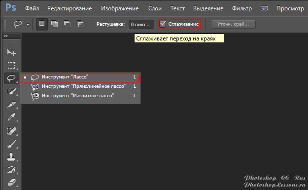 | Перевод Lasso Tool - Anti-alias (Инструмент «Лассо» - Сглаживание)Перевод и месторасположение Lasso Tool - Anti-alias (Инструмент «Лассо» - Сглаживание) на примере Photoshop CC (Eng/Rus). На изображениях ниже вы можете наглядно увидеть месторасположение и перевод Lasso Tool - Anti-alias (Инструмент «Лассо» - Сглаживание) на примере Английской и Русской версии Photoshop CC (2014). ![]() ![]() |