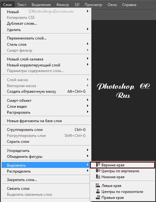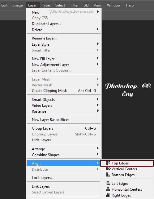 | Перевод Layer - Align - Top Edges (Слои - Выровнять - Верхне края)Перевод и месторасположение Layer - Align - Top Edges (Слои - Выровнять - Верхне края) на примере Photoshop CC (Eng/Rus). На изображениях ниже вы можете наглядно увидеть месторасположение и перевод термина Layer - Align - Top Edges (Слои - Выровнять - Верхне края) на примере Английской и Русской версии Photoshop CC (2014). ![]() ![]() |