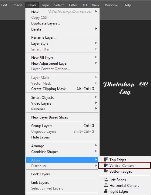 | Перевод Layer - Align - Vertical Centers (Слои - Выровнять - Центры по вертикали)Перевод и месторасположение Layer - Align - Vertical Centers (Слои - Выровнять - Центры по вертикали) на примере Photoshop CC (Eng/Rus). На изображениях ниже вы можете наглядно увидеть месторасположение и перевод термина Layer - Align - Vertical Centers (Слои - Выровнять - Центры по вертикали) на примере Английской и Русской версии Photoshop CC (2014). ![]() ![]() |